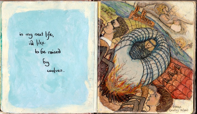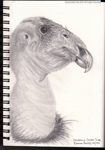 I started drawing this California Condor last night, also graphite on my new small sketchbook; in fact, this is the image that I chose for the very first page. It’s not quite finished, and this was also a quick sketch that I decided to detail a bit this morning, and I will do a little more later today or tomorrow. I like drawing animals because they don’t think about the “who” that they want to let you see; they just are. When they look at me, they are not judging my value as a human being, not really. Their lives operate by a set of rules that are very much in the present moment. They are authentic. I may not know exactly what they are thinking, but I can connect with their moment, and the things that I know about that are impacting their lives, like human encroachment, destruction of habitats, starvation, sickness and death from pollution introduced by human “civilization” into their habitat. I love animals of all kinds.
